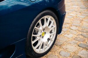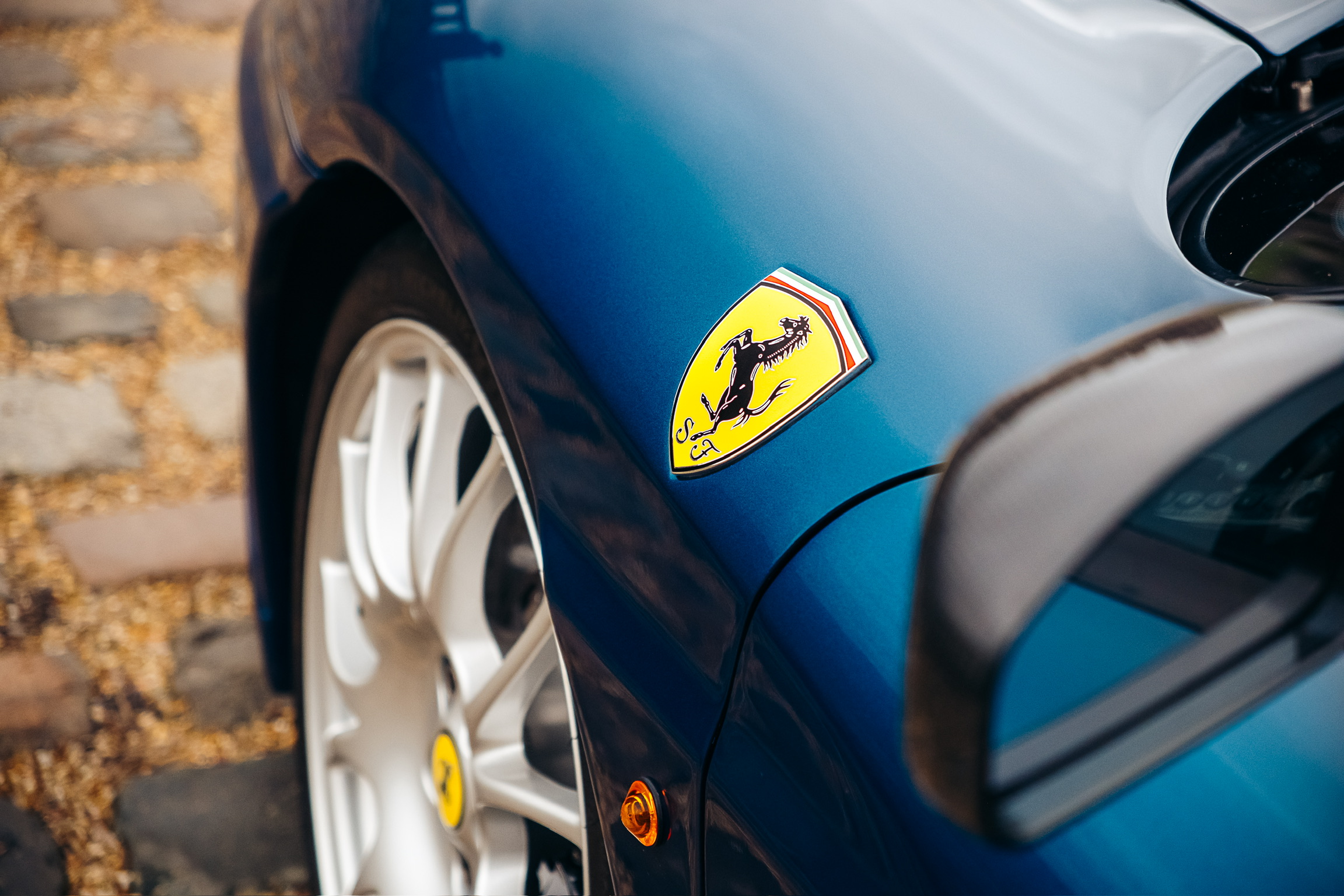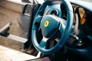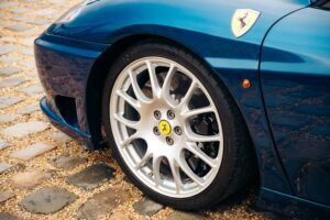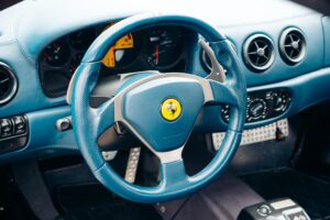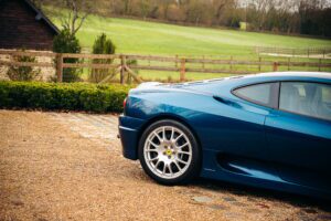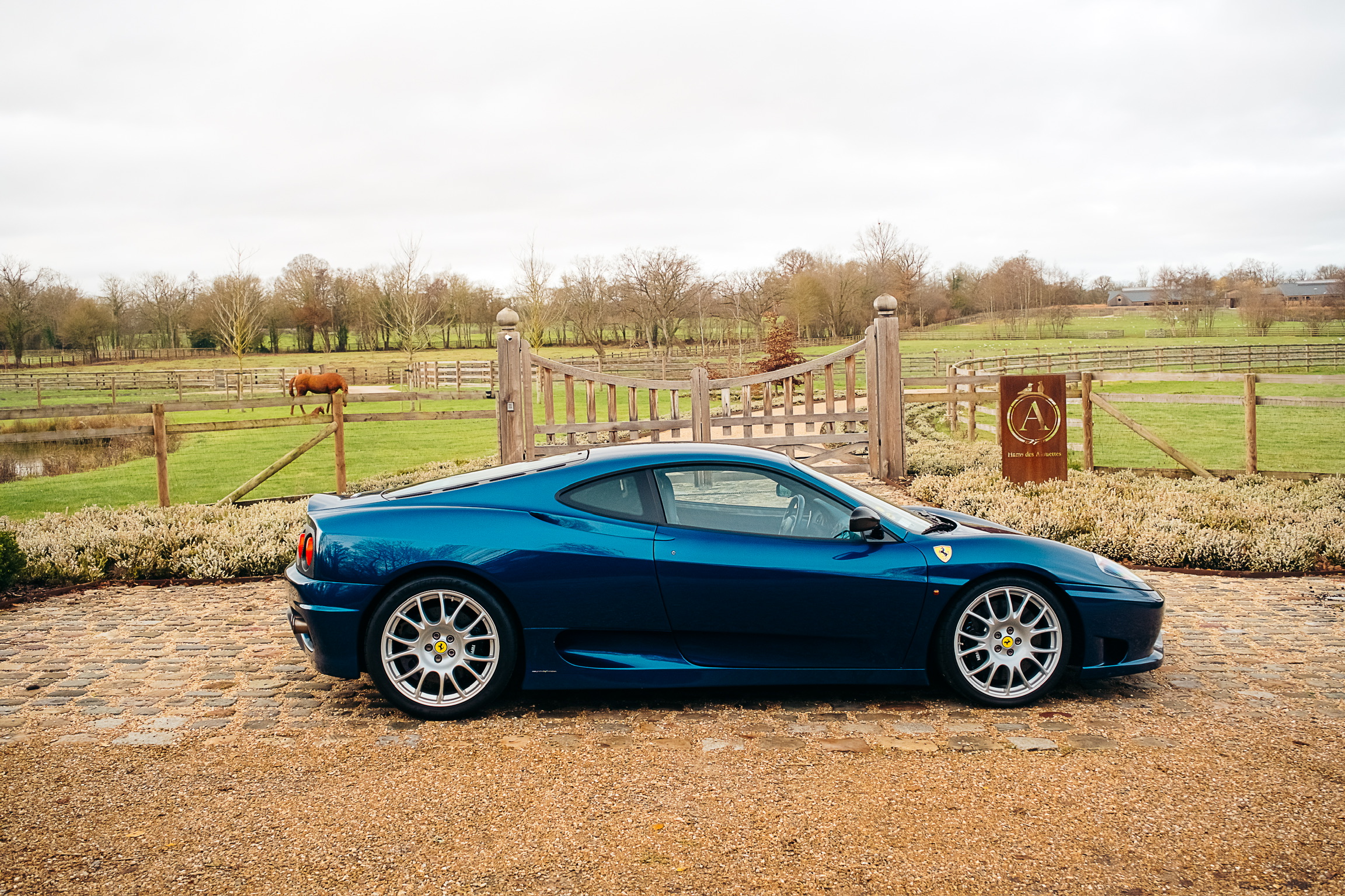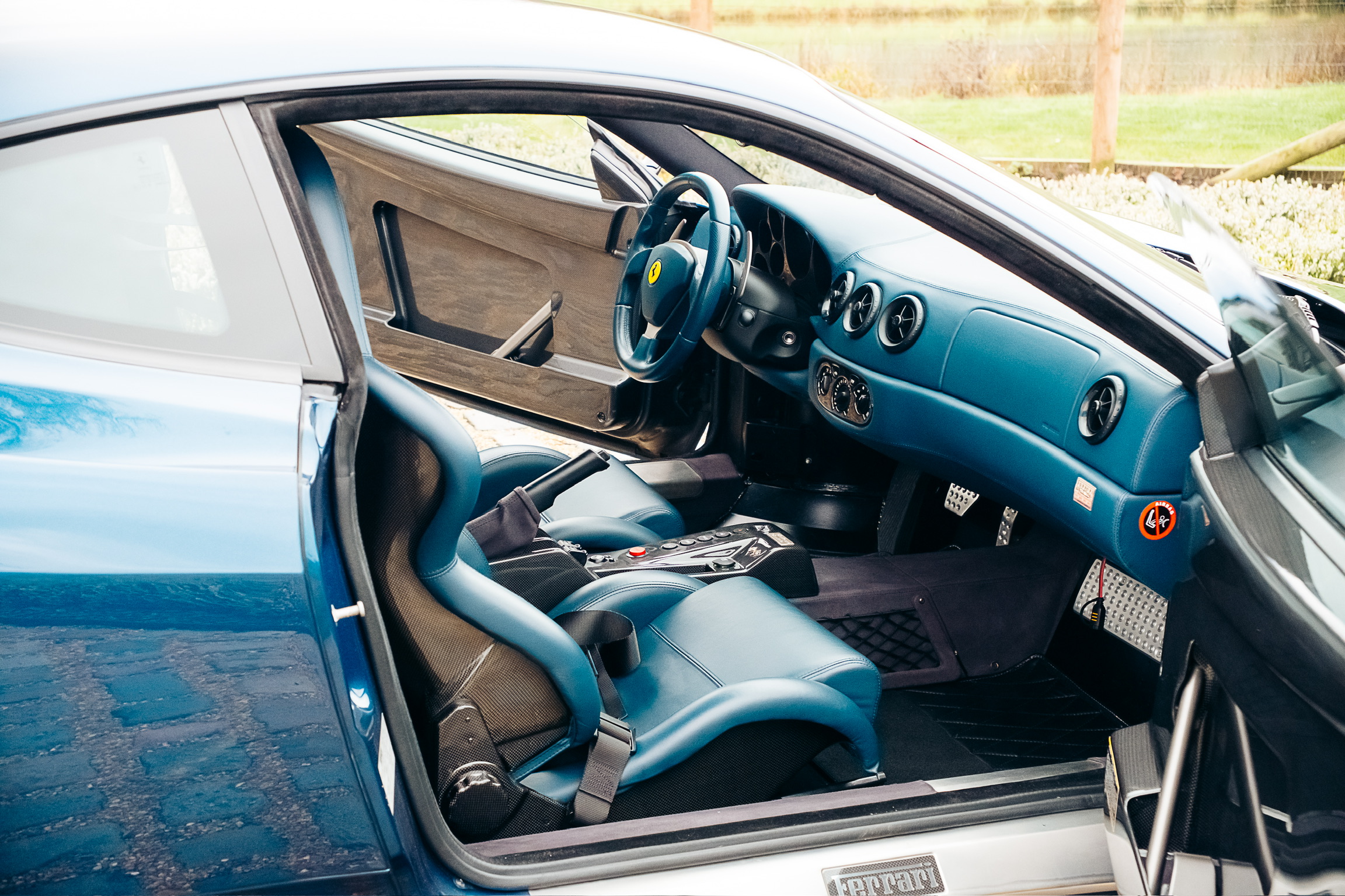 Sur les 1300 Ferrari 360 Challenge Stradale produites, seulement 7 ont été peintes dans cette magnifique teinte Blu Nart et une seule de ces 7 voitures dispose de l’intérieur tout cuir Blu Scuro, ce qui fait de notre 360 CS un modèle absolument unique.